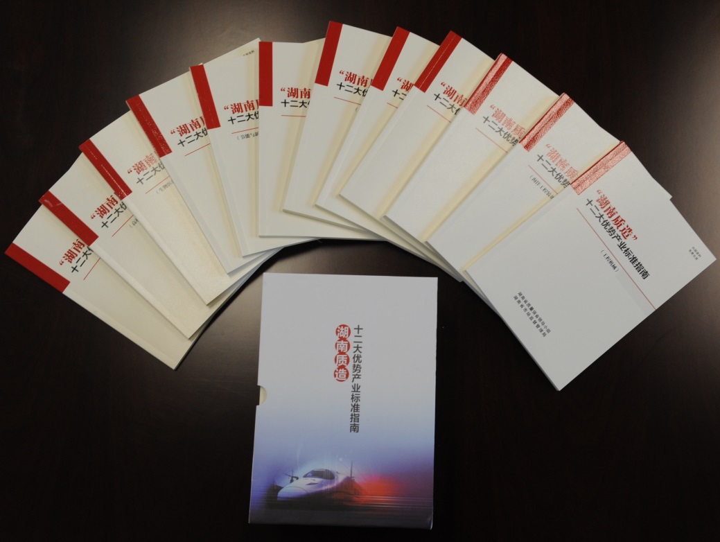 为推进制造业高质量发展,服务相关产业与企业,湖南省质量强省领导小组和湖南省市场监督管理局组织,湖南省质量和标准化研究院、国家技术标准创新基地(长株潭)撰写了《“湖南质造”十二大优势产业标准指南》系列丛书。丛书由许达哲省长亲自作序,何报翔副省长担任主编,省市场监管局向曙光局长、刘湘凌书记担任副主编,江涛副局长担任执行主编,并在2019年湖南省3·15国际消费者权益日大会上正式发布。